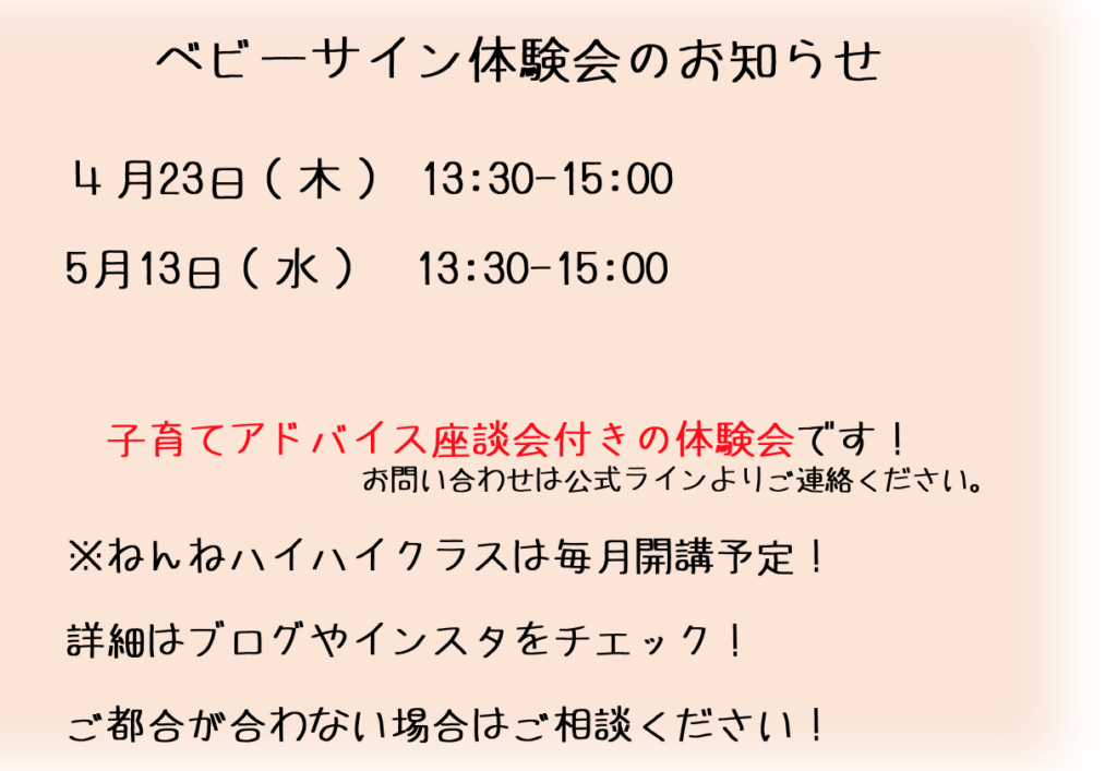 ベビーサインに対しての理解や、今できることをお母様方へお話をします